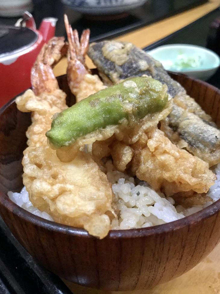 海老天2本がのった小天丼はボリュームあり、
