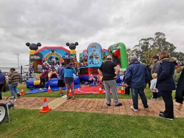 残念ながらの小雨交じりのマーケット、外で人が集まっているのは子供のプレイグラウンドのみ