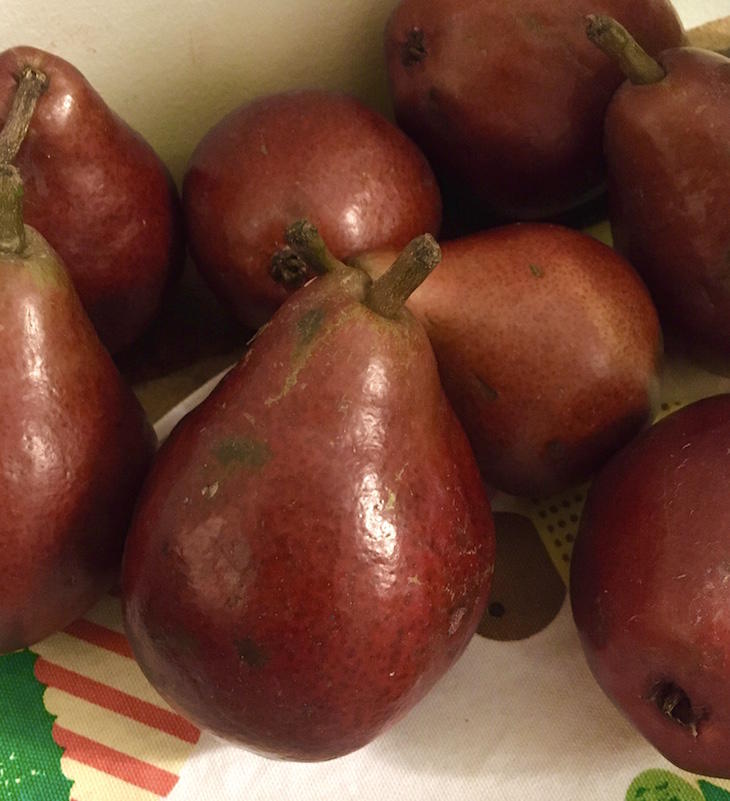 ググってみたら、品種は”Red Anjou Pear”のよう。いただいたときは固く、まったく熟していませんでした。熟していないせいか香りもなく、これ本当にフルーツなんだろうか?と。