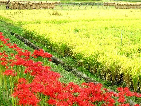 ちょうど、稲刈りの時期だったけぇ田んぼのどこかしらと彼岸花が咲き並んで田舎の秋の風景って感じで心落ち着いたなぁ。見慣れた風景なんだけど秋がやって来たなぁって感じるだんねェ。
