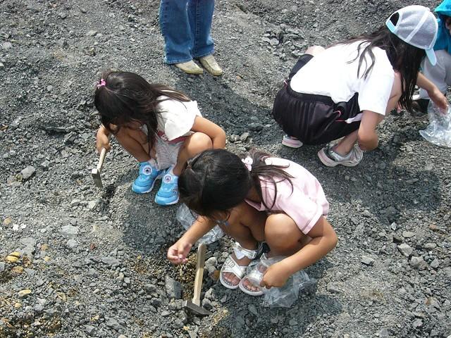 変わった化石を見つけるたびに子供たちは歓声を上げ自慢します。