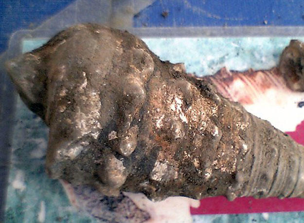 ビカリアとは円錐状の殻に太いトゲを持つ巻き貝のことです。