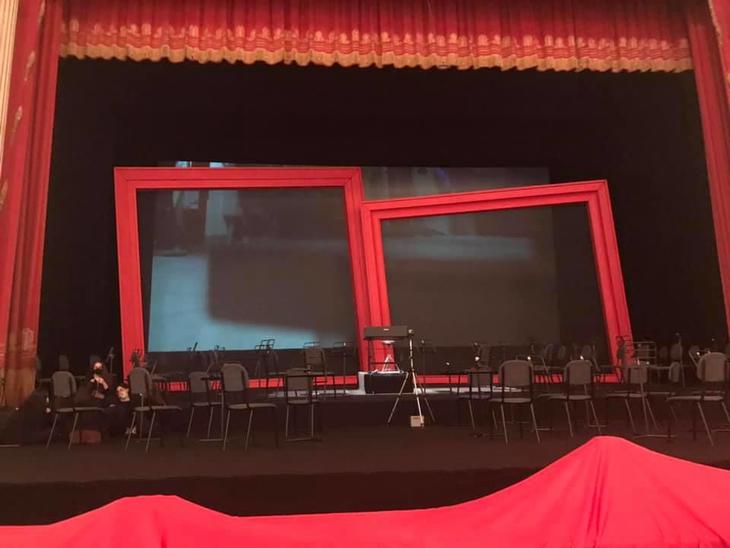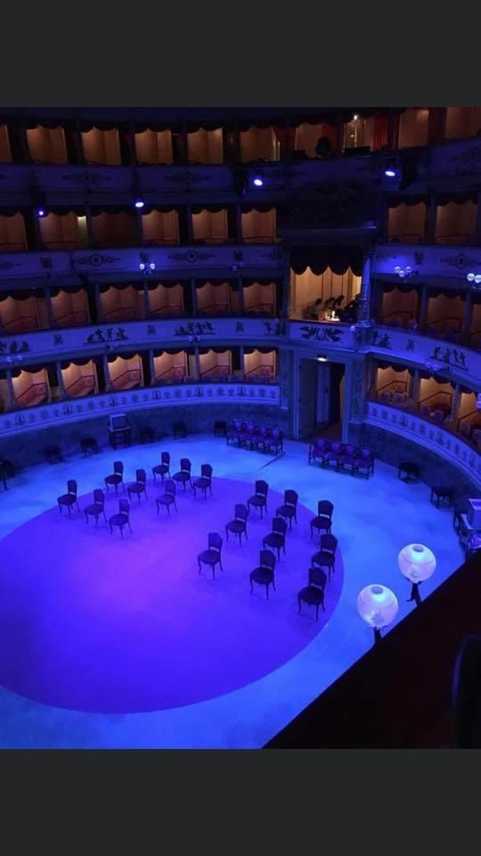 なんとプラテア席の椅子をすべて取り出し舞台に変え、普段舞台に使っている場所ではオーケストラや俳優さんたちが演奏や演技をしていました。