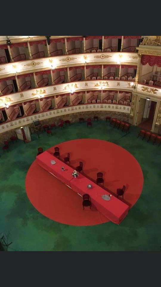 プラテア席を舞台に使うといった試みは世界でも初めてでしたので、どうなるのかなあと興味津々でしたが、終了後とても評判がよかったので歌劇場関係者もホッと一安心のようでした。