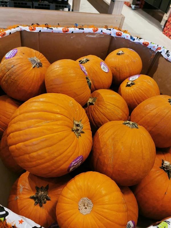 スーパーマーケットでは、ハロウィンのカボチャとクリスマスの小物で店内がにぎやかになってきています