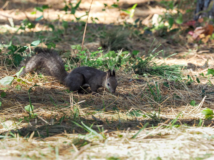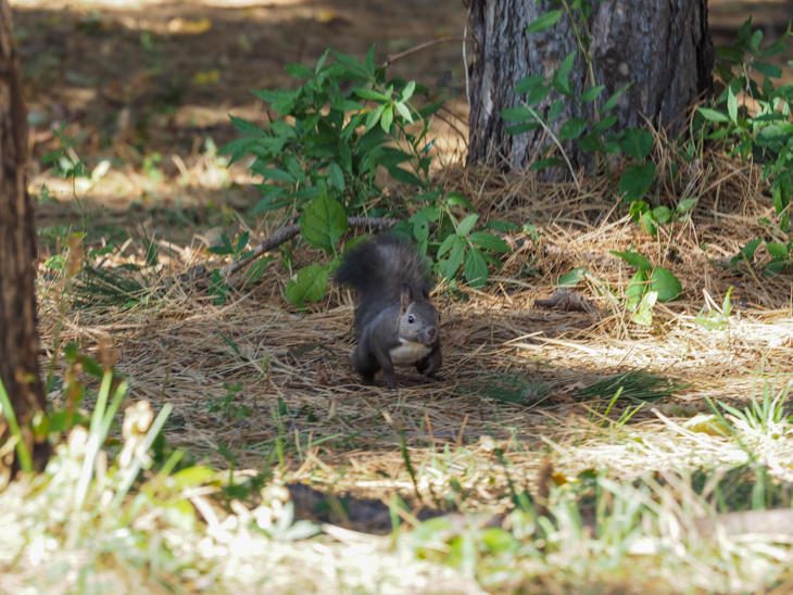 最後は気に入った松の実を両手で持ったあと口に加え、一目散に木の幹を駆け上がってうっそうと茂っている松の木から聞こえる小鳥のさえずりの中へと消えていきました。