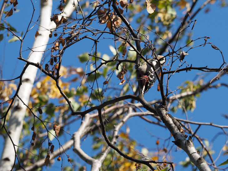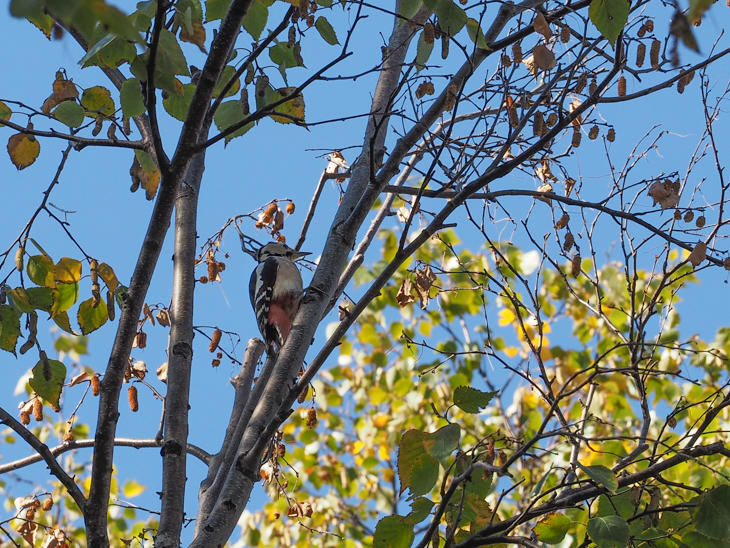 葉が落ち始めたシラカバの枝だったので、断然見つけやすくなりました。紅葉が終われば、これからますます小鳥をみつけやすい季節になります。