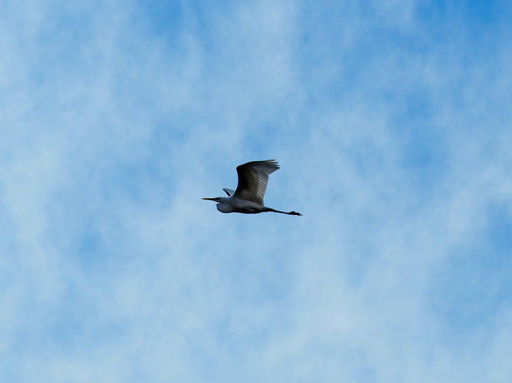 札幌の上空(西区)を飛ぶ「アオサギ」。札幌近郊の田んぼがあるところでは、よく見かけるアオサギですが、札幌市内でもまれに飛んでいることがあるようです(海のない札幌ですがカモメは町なかでも飛んでいます)。ときには空を見上げてみてください。アオサギを見かけることがあるかもしれません。