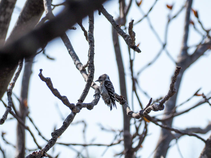今回、前田森林公園では見かけませんでしたが、同じくキツツキの仲間でときどき遭遇する「コゲラ」です。