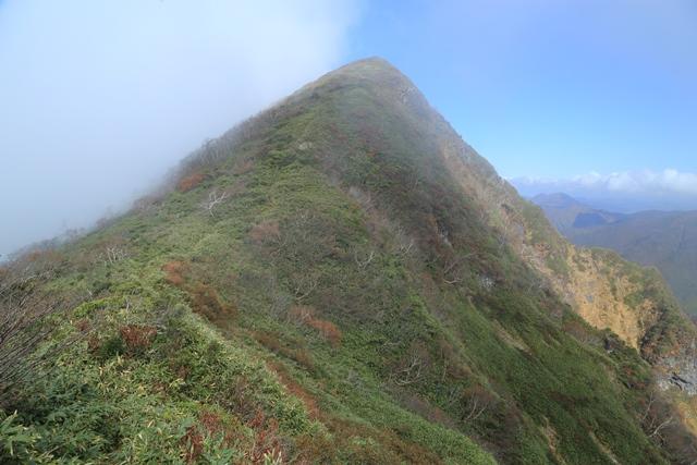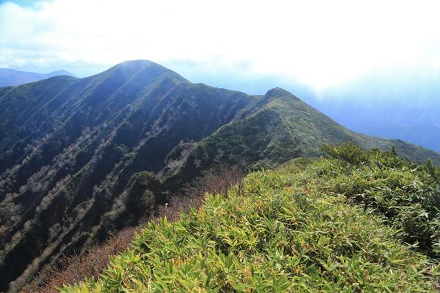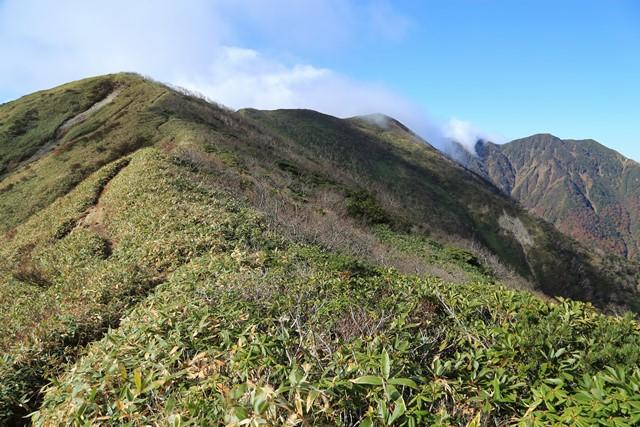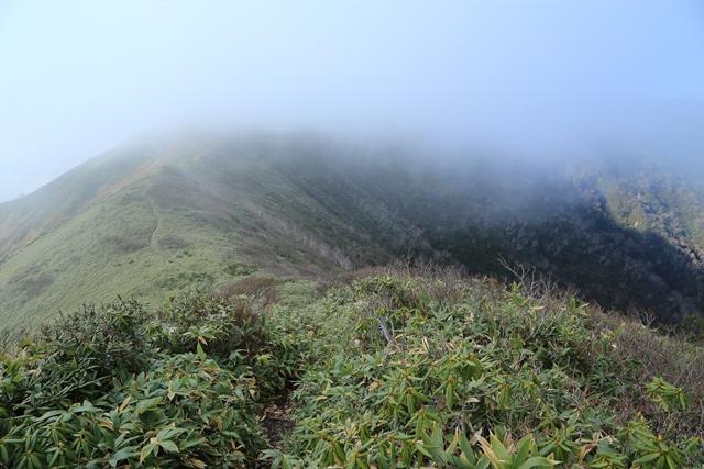 那須の山らしい強風を栃木県側から受けつつ稜線を戻ります。