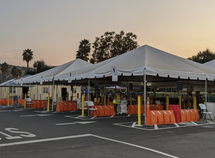 カイザーパーマネンテの予防接種サービスでは、最初にウェブサイトで接種時間の予約をすることが推奨されていますが、予約をせずにでかけた友人(カイザーパーマネンテ利用者)もそのまま予防接種をしてもらえたということです。予約をした方としていない方を選別することなく、一列でテントに向けて並んでいき、テントが近くなると、どちらのテントに向かえばよいか振り分けられるシステムのようです。