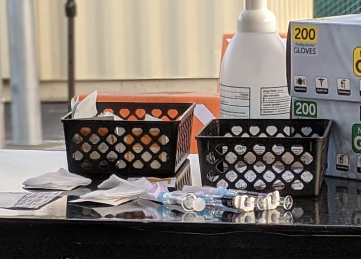 接種自体は、使い捨ての手袋を着用した接種技師の方が、ひとりずつていねいにしてくださいます。接種対象者への接種が終わるごとに、手袋を代え、手指の消毒をし、非常に「ていねいにひとりずつ接種」をしてくださり、とても安心感がありました。ちなみに、予防接種の費用は健康保険プログラムにあらかじめ含まれており、その場での支払いは発生しませんでした。