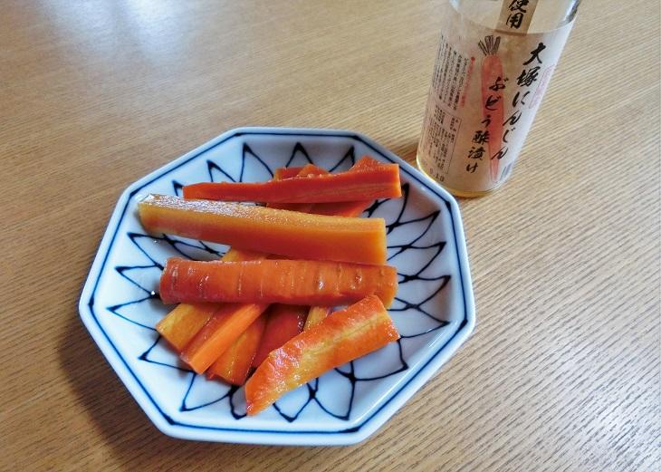 こちらは「大塚にんじんぶどう酢漬け(税込540円)」。カリッと食べられる人参のピクルスです。