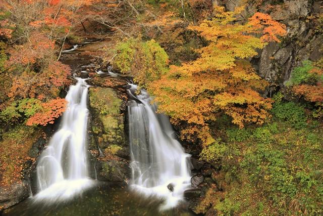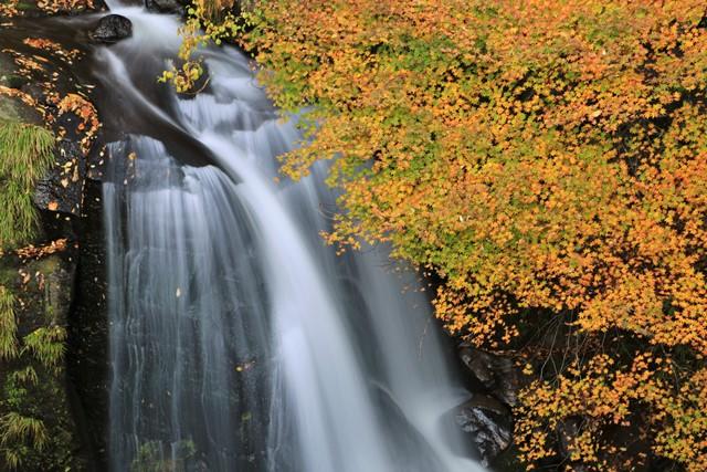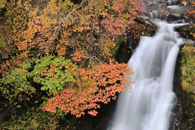赤石川の支流(黒沢)にあり、二筋に流れ落ちる様子が美しい滝です。