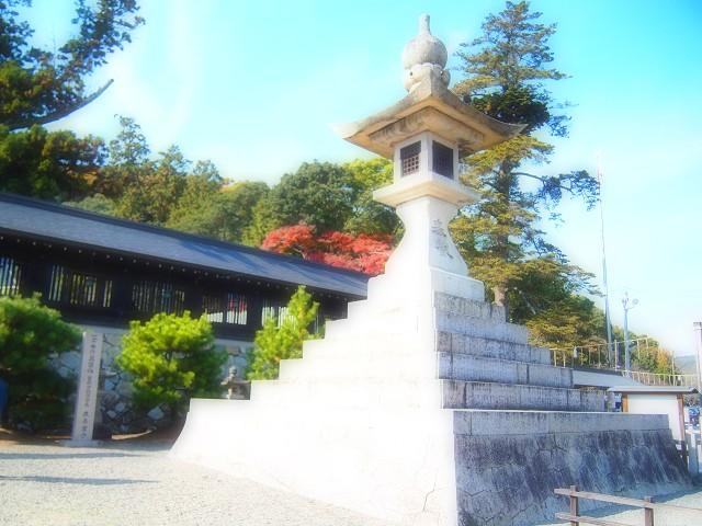 安政6年(1859年)に天下泰平を祈願して建立されたもので、6段造りの石段には1670余名の奉納者名が刻まれ、日本ではいちばん大きな燈籠と言われています。