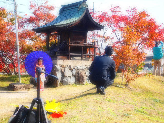 亀島神社を背景に七五三の写真を撮っていらっしゃいました。