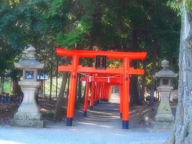 龍王山の登山道に平行して建ち並ぶ朱塗りの鳥居は稲荷神社への参道です。