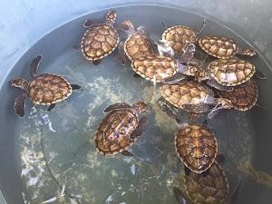 ウミガメの子供を放流できる(25万ルピア~5万ルピア)島があり。