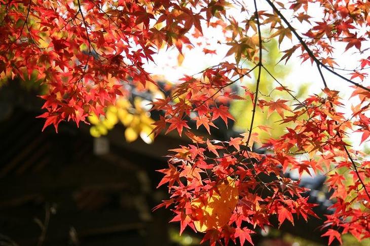また、高低差のある境内では、景色を見上げたり見下ろしたりしながら、深まり行く秋を感じられます。
