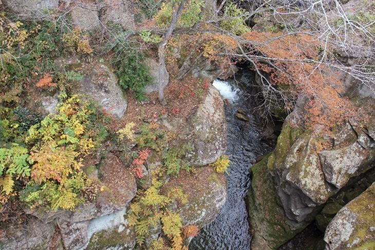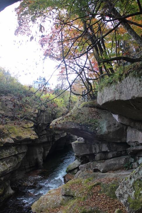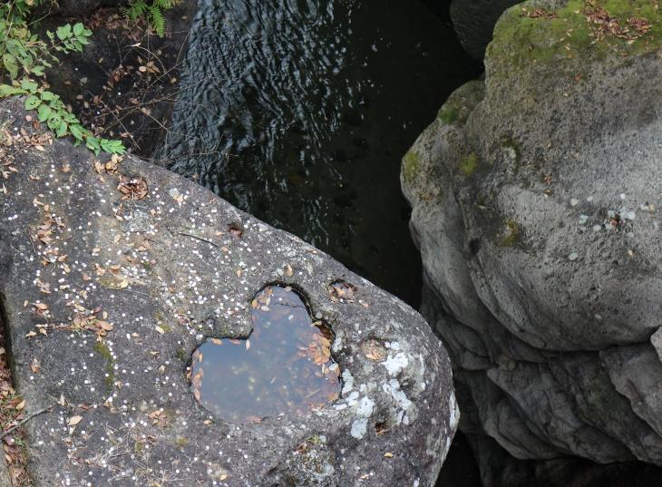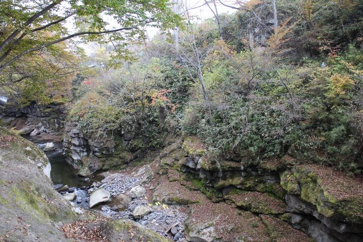 磊々峡は長さ約1kmで、深さが20mほどの渓谷。