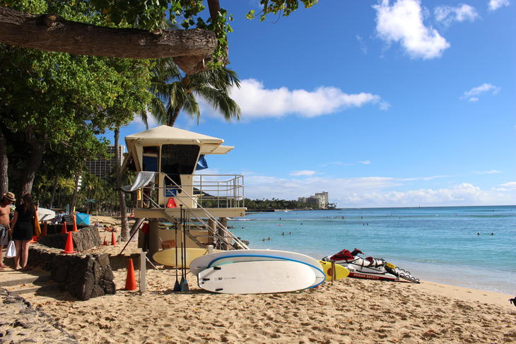 ワイキキのビーチにも海水浴客を見かけるようになりました。