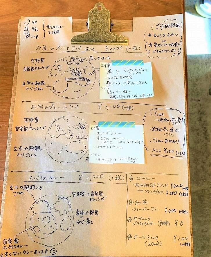 手書きのメニュー