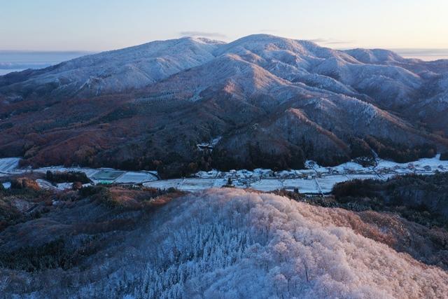 前日に降った雪と相まって、幻想的な情景が広がっています。