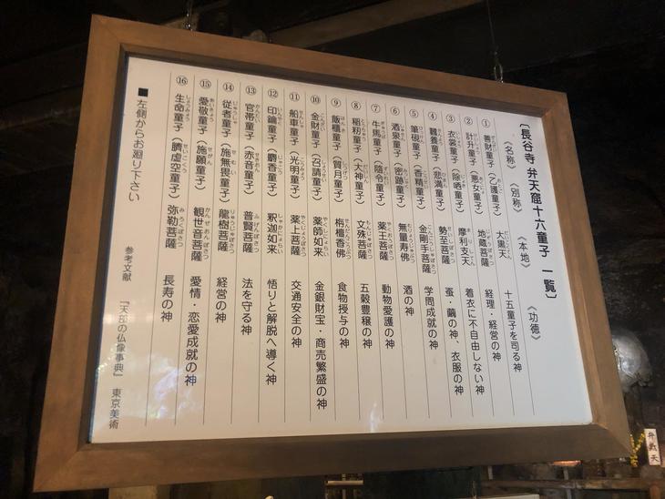 長谷寺弁天窟十六童子と呼ばれる神々が祀られています。