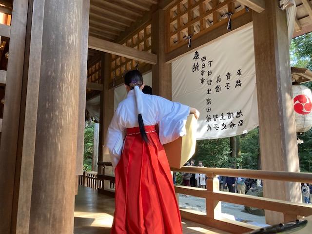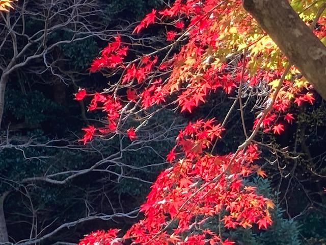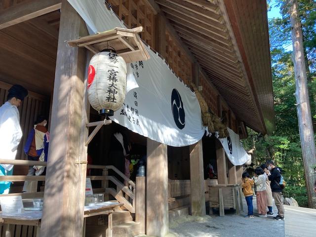 紅葉もまだそれほどではありませんでしたが、古札納礼所(古いお札やお守りを納めるところ)あたりでは、黄色や赤色に紅葉した美しい木々が見られました。