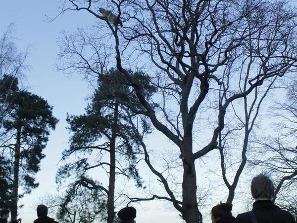 動物たちも来園者に会えなくなるのが寂しくなるのか、それともサービス精神が旺盛だけなのかはわかりませんが、スウェーデン語でlodjur(ローユール)と呼ばれるオオヤマネコの1頭が木のかなり高いところまで登っていました。それはジャンプしたら間違いなく柵越えして脱走事件が発生しかねない高さでした。来園者をマジマジと見たり、木の上でくつろいだりしていました。