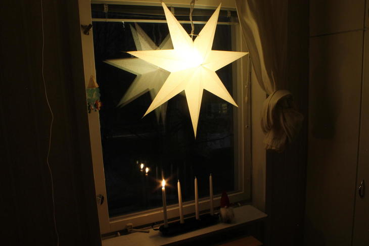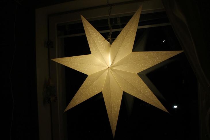 そしてadventsstjärna(アドベンツシャーナ) と呼ぼれる紙でできた星形の飾りも、このアドベントの時期ならではです。中に電球を入れて窓に吊したり、窓際に立てたりします。もともとはチェコ共和国の習慣のようですが、1930年代にスウェーデンに広まりました。