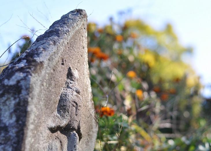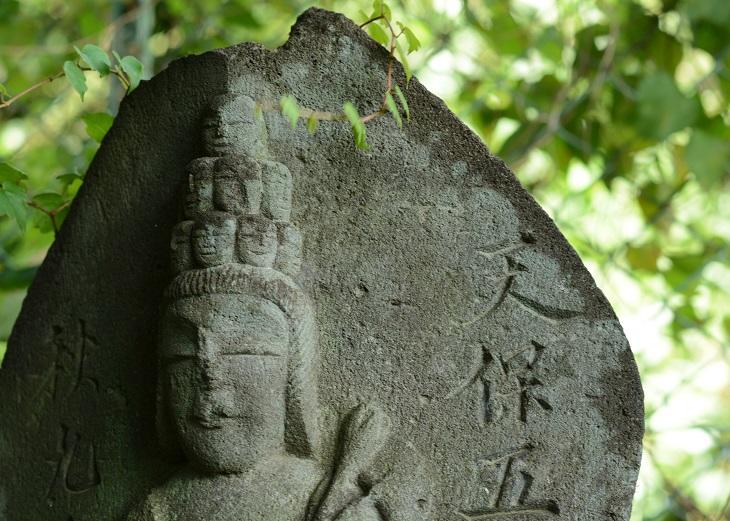 天保と彫られたこの石仏は、頭に人の顔がたくさん。11の顔であらゆる方向を見てあらゆる人々を悩みや苦しみから救うという「十一面観音」でしょうか。