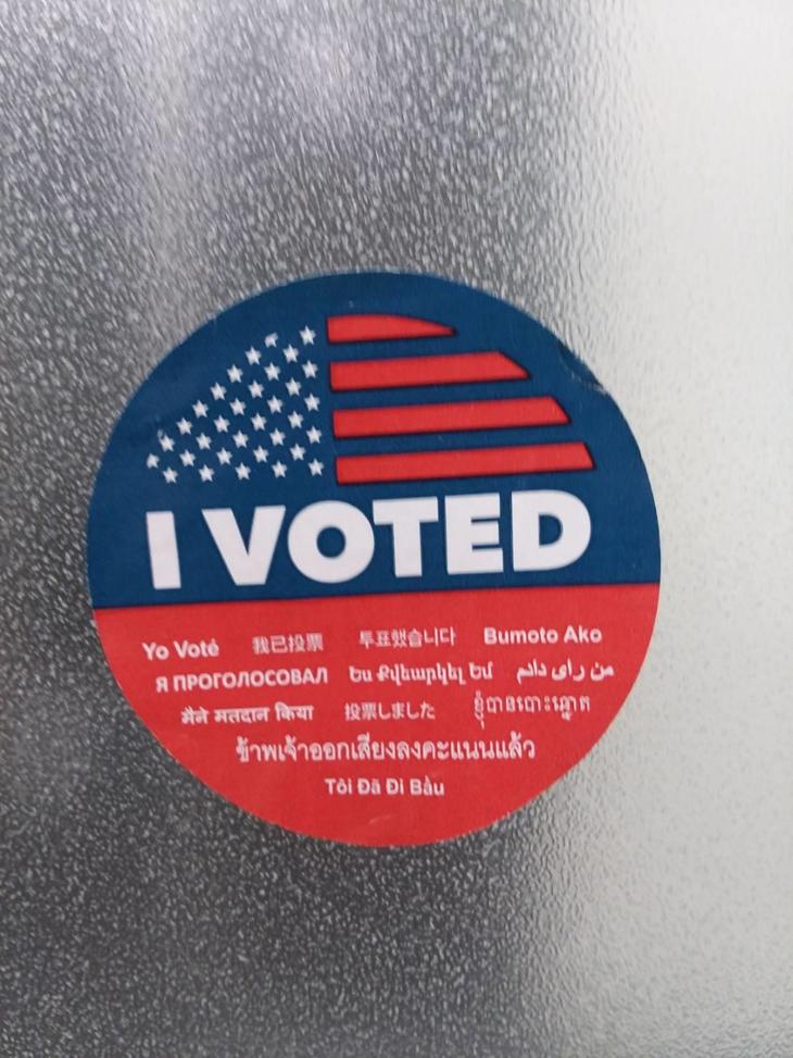 11月3日火曜日の投票日当日は、指定された投票所前には看板が掲げられます。学校や図書館、公的な場所など。そして、その投票を終えた方に配られるVoteステッカーは州ごとでデザインが違います。