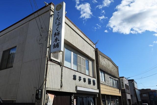 駅前商店街の一角にあり、名物の「こんにゃく餅」が人気の和菓子店です。
