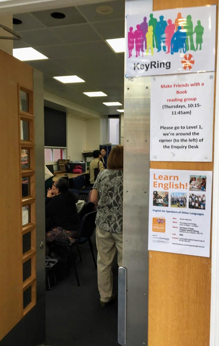 折しもこの日は木曜日、時刻は10時20分。場所もそのままこの図書館内だなんて、なんというタイミングのよさ! これは行くしかないでしょう、とさっそく足を向けたのですが「イギリスあるある」、初歩的なミスを犯してしまいました。「2階」とあったにもかかわらずそれらしき部屋が見当たらない。ウロウロして職員に聞いたところ、もう1階上だと。そうでした、イギリスの2階は日本で言う1階なので2階とは、つまり日本の数え方からすると3階のことでした。