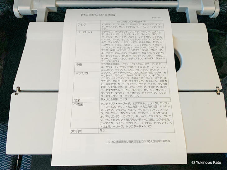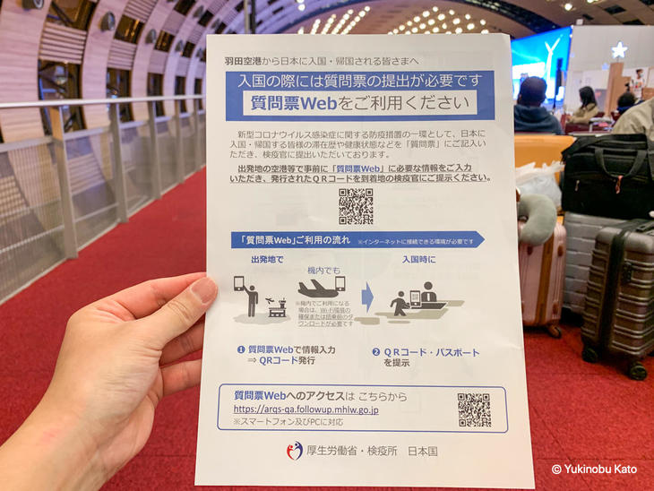 搭乗手続きなどの流れは普段どおり。私がチェックインしたANA羽田便の場合、搭乗手続き時に「羽田空港から日本に入国・帰国される皆さまへ」という以下の内容が記載されたA4サイズの印刷物1枚が手渡されました。