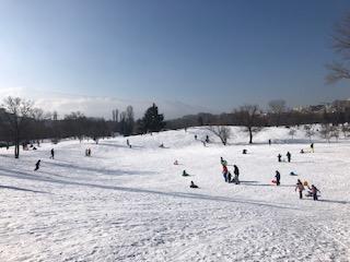 それもあり、公園には多くの子供がソリを持って訪れたようです。