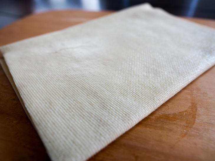表面は木綿豆腐のようで、"シート状に凝縮された豆腐"という感じです。