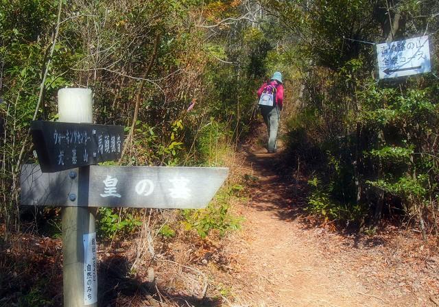 右へ曲がると皇の墓です。誰のお墓か気になったので帰って調べてみたら岩屋寺の開祖の皇子、善通大師の墓だそうですが、一説には鬼ノ城の鬼と言われた温羅(うら)の胴体を埋めた場所ではないかとも伝えられています。