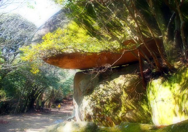 伝説では温羅がこの巨大な岩を差し上げて巌窟を造り、棲みついたと言われています。