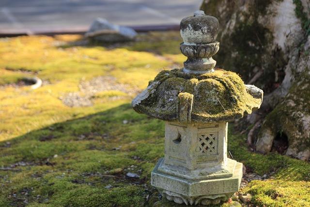 駐車場で西日を浴びる石燈篭