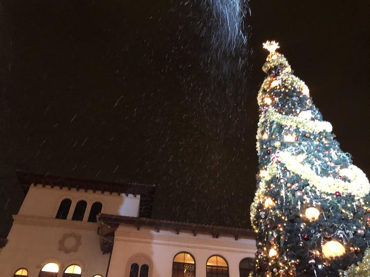 ちょうど雪を降らせているところに出くわして子供達は喜んでいました。