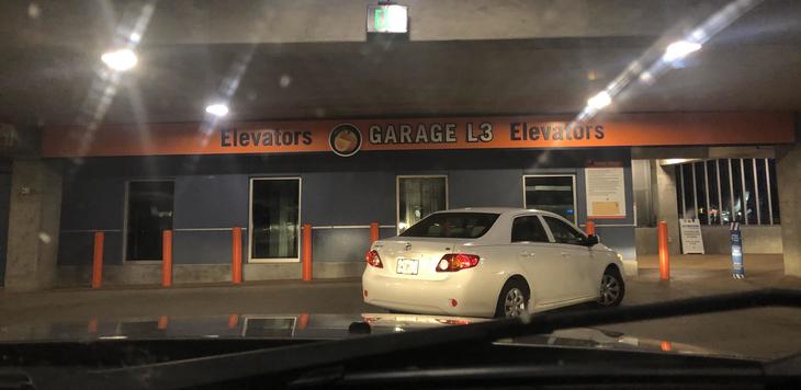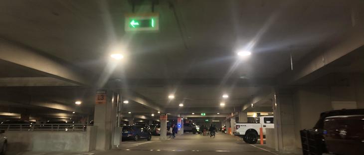 駐車場の頭上には現在の空き状況が示されているので、掲示板の緑の数字がゼロだと満車ということです。