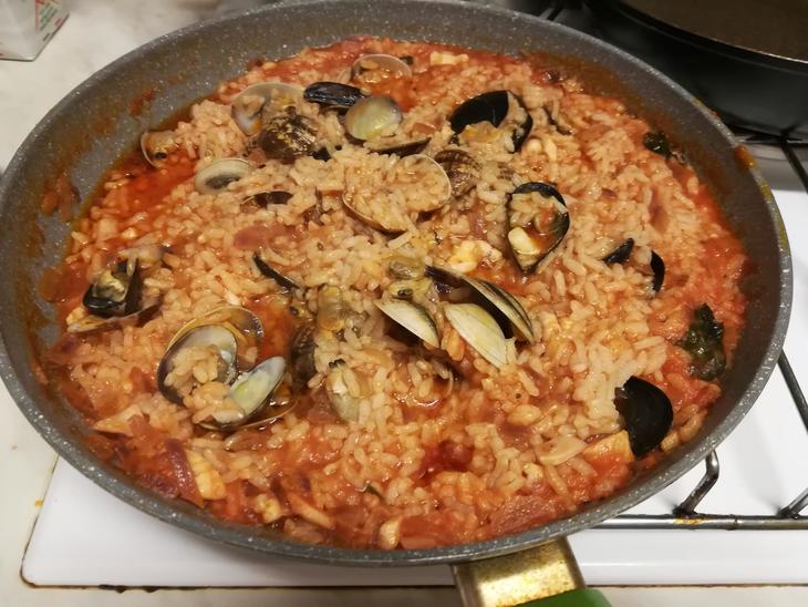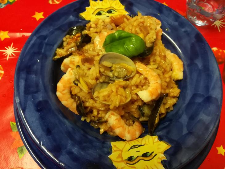 プリモピアットは毎年ヴォンゴレ(あさり)・スパゲティにするのですが、米料理が食べたくなり、イカ、ヴォンゴレ(あさり)、コッツェ(ムール貝)、エビ入りの魚貝リゾットにしました。