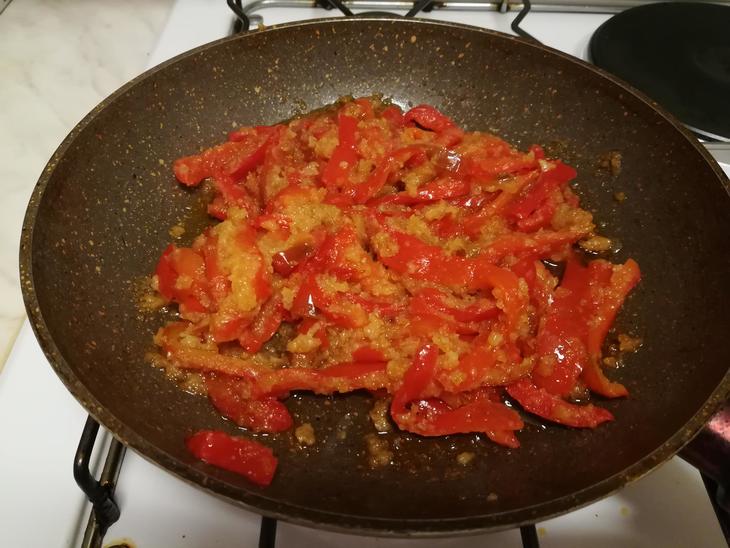 こちらはクリスマスにちなんで赤色だけのパプリカ・ケッパー・パン粉の炒めもの