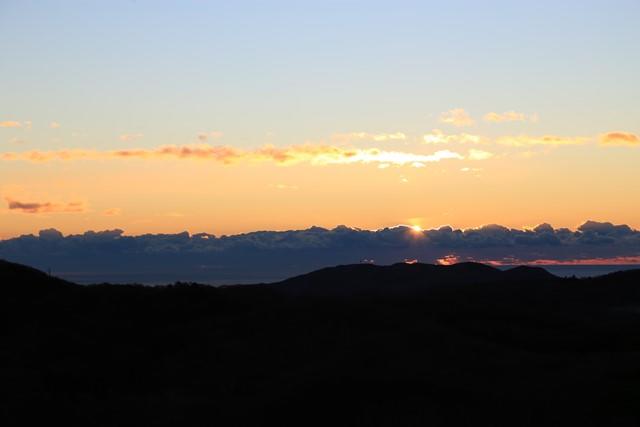 海側に見える仏具山の頂に朝日が昇るのを待ちます。