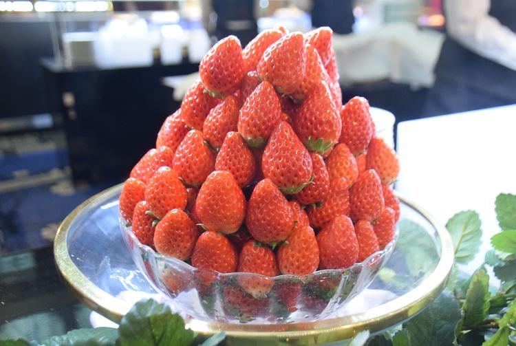 フレッシュいちごは、博多あまおう、あきひめ、さちのかなどのブランドいちごの中からその時期に一番おいしい1種類が厳選されて提供されます。 筆者が行ったときはあきひめでした。いちごにはうるさい筆者ですが、相当おいしいいちごでしたよ。