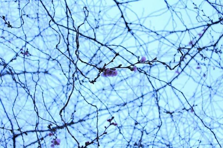 その代わりに、昨年12月頭ぐらいから咲き始めた桜を紹介します。場所は、ストックホルムの桜の名所として有名なKungsträdgården(クングストレードゴーデン)です。例年だと4月半ばから咲き始め、月が終わる頃に満開となるのですが、暖冬の影響か、すでにポツポツと咲き始めています。2020年の場合だと、1月はほとんど雪が降らず暖かかったため、月後半には今回と同様に咲き始めていましたが、今冬はそれよりも1ヵ月早くその美しさを見せ始めました。寒空の下雪が降るなか、凛と咲くその姿はとても清々しいものを感じさせます。