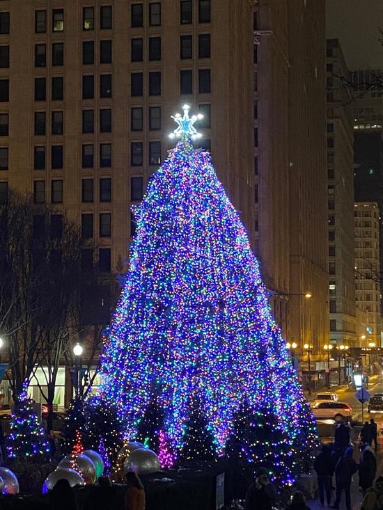シカゴダウンタウンの観光名所といえばここを一番に思い浮かべる方や、行ってみたいと思う方がお多いのでは?さまざまなオブジェや、見どころ満載の公園 Millennium Parkです。クリスマスから年明けの1月中にはこの大きな電飾のクリスマスツリーが皆さんを楽しませてくれます。例年ですと、11月下旬にあるミッキーマウスが先導してのパレードがあり、この大きなクリスマスツリーの点灯式もありますが、今冬は残念ながら中止となってしまいました。