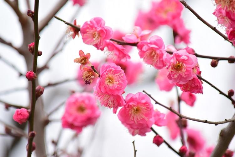 梅林の中央には、大阪府の梅の標本木の白加賀が植えられています。1月中旬頃に早咲き種約55本が満開になり、中咲き品種から遅咲き品種まで順々に咲いていきます。2月中旬頃が全体的な見頃かと思われますが、開花状況は大阪城公園のウェブサイトで確認してください。【大阪城公園】・住所: 大阪市中央区大阪城・URL: https://www.osakacastlepark.jp/